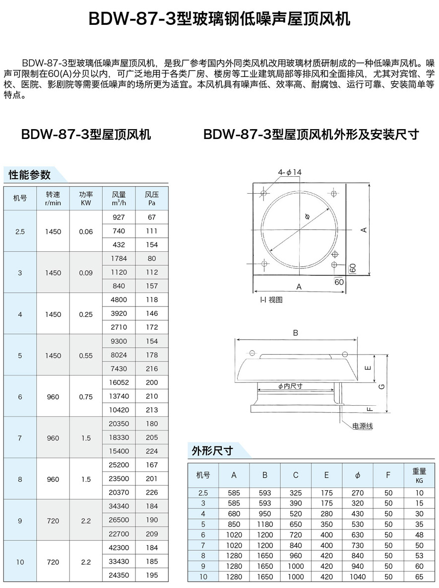 BDW-87-3型玻璃低噪聲屋頂風(fēng)機,是我廠參考國內(nèi)外同類風(fēng)機改用玻璃材質(zhì)研制成的一種低噪聲風(fēng)機。 噪聲可限制在60(A)分貝以內(nèi),可廣泛地用于各類廠房、樓房等工業(yè)建筑局部等排風(fēng)和全面排風(fēng),尤其對賓館、學(xué) 校、醫(yī)院、影劇院等需要低噪聲的場所更為適宜。 本風(fēng)機具有噪聲低、效率高、耐腐蝕、運行可靠、安裝簡單等 特點。